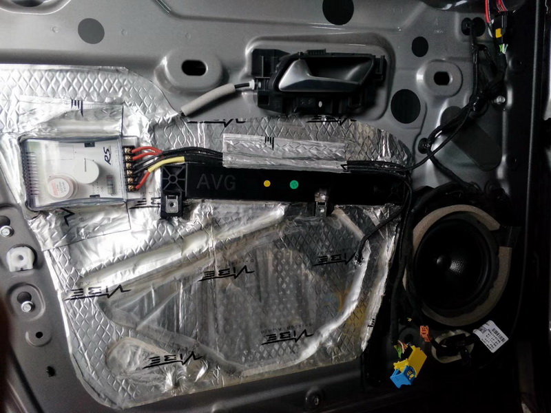 第一步:隔音,使用英国威极对门板进行隔音处理